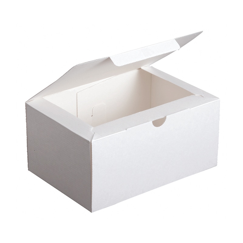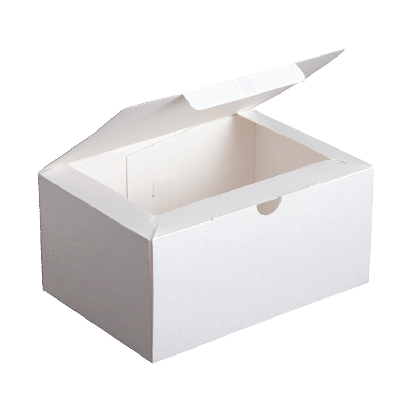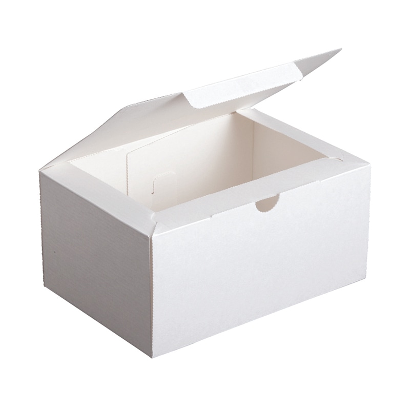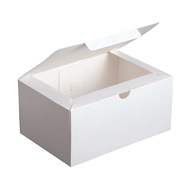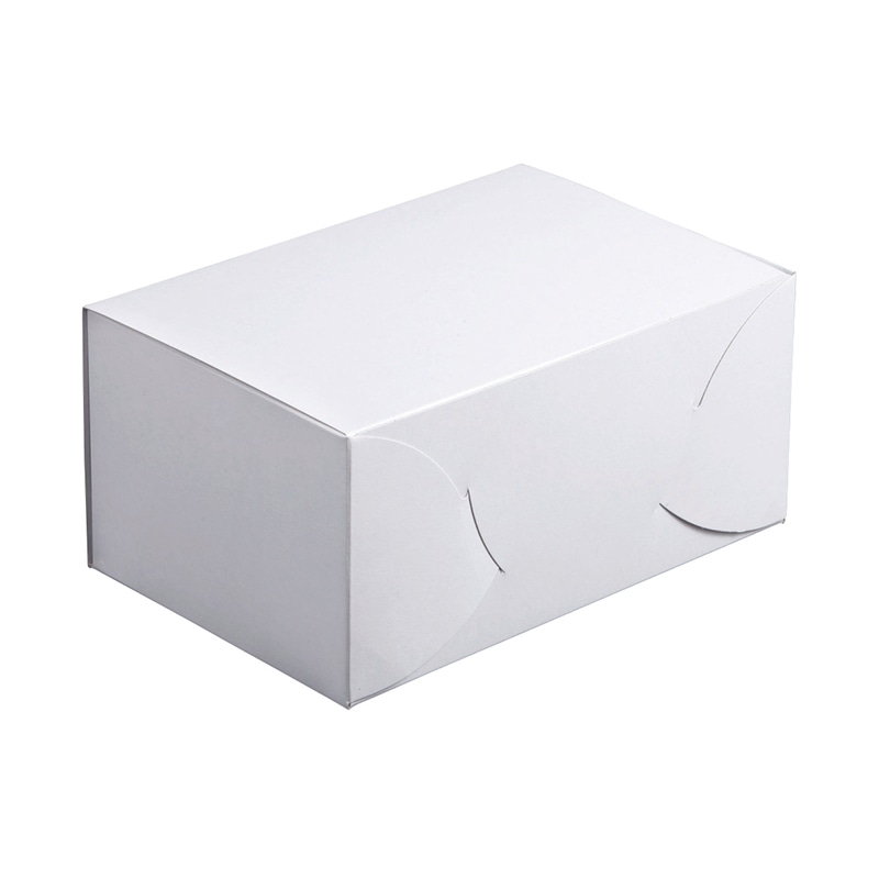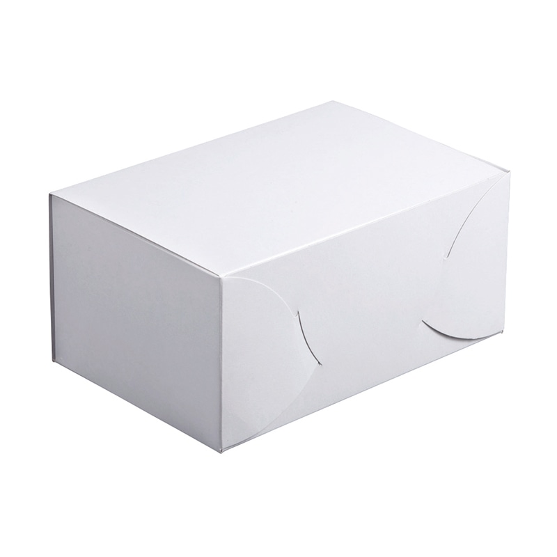 ケーキの美しさが際立つ、定番の白無地タイプ。スタッフが喜ぶ本体一体型のワンタッチ箱です。●入数:50枚