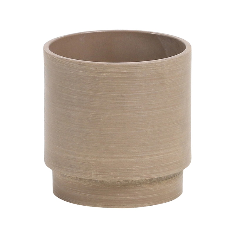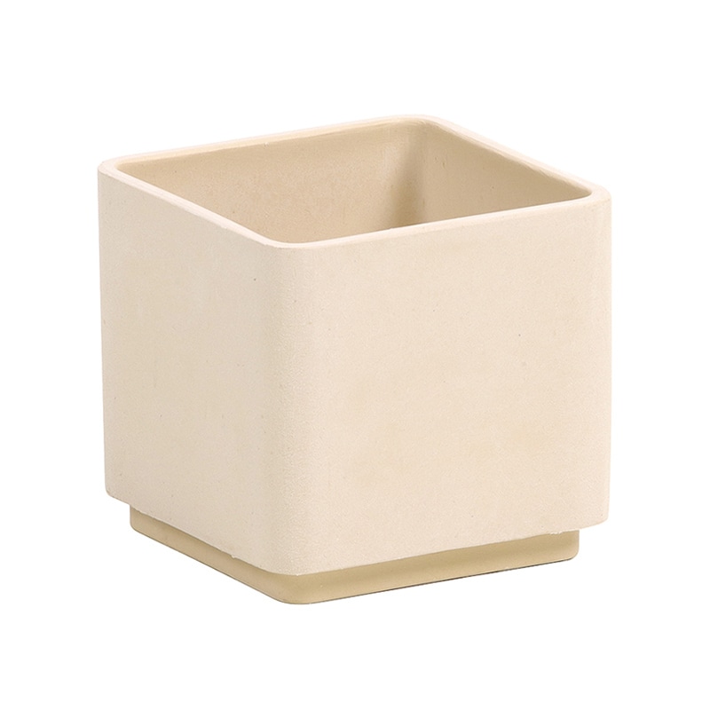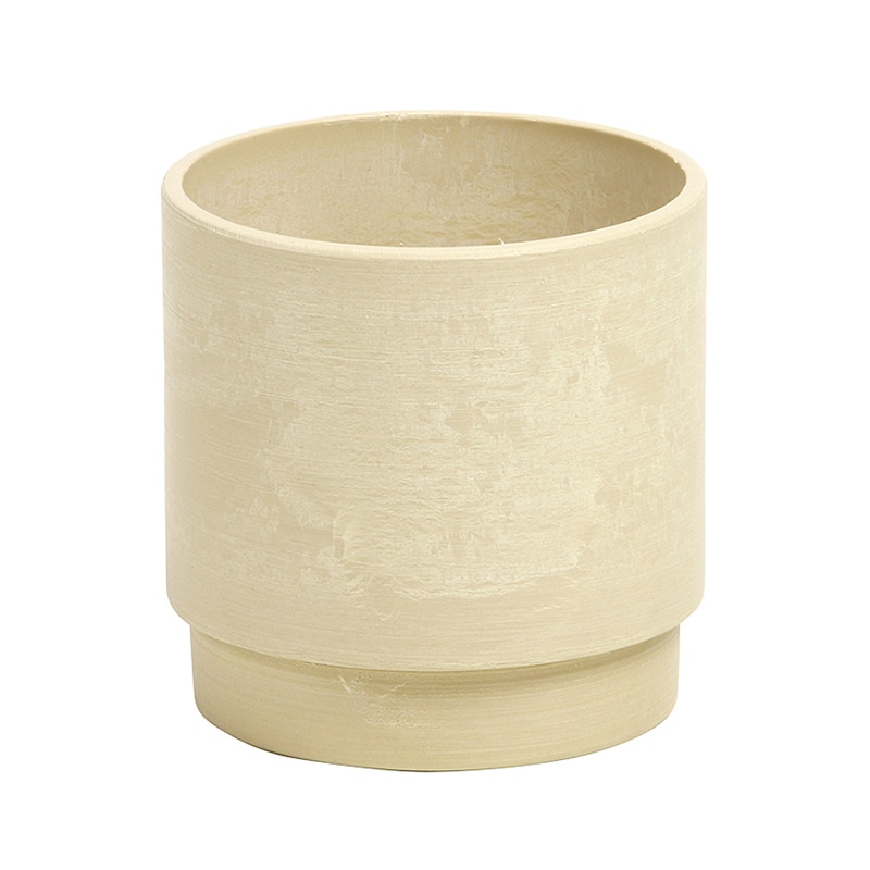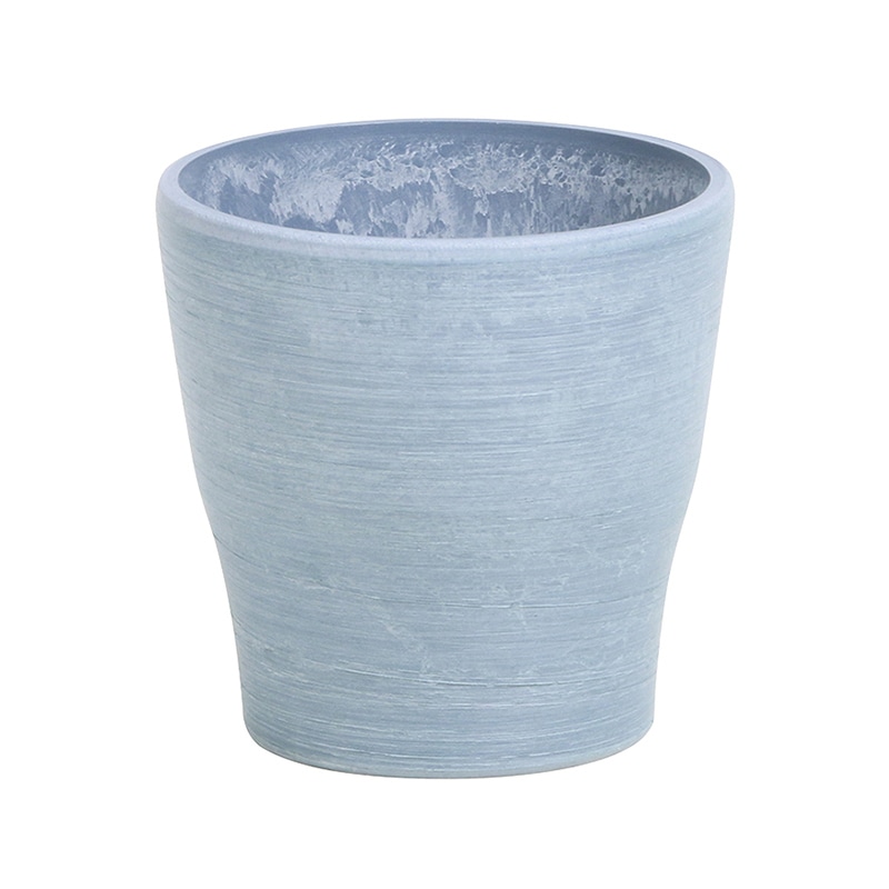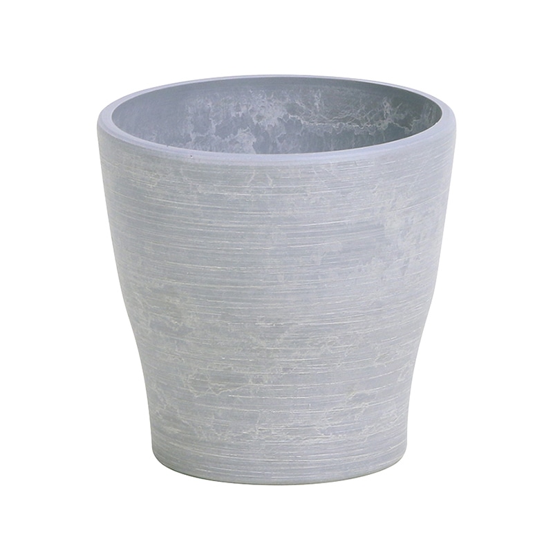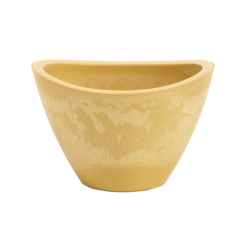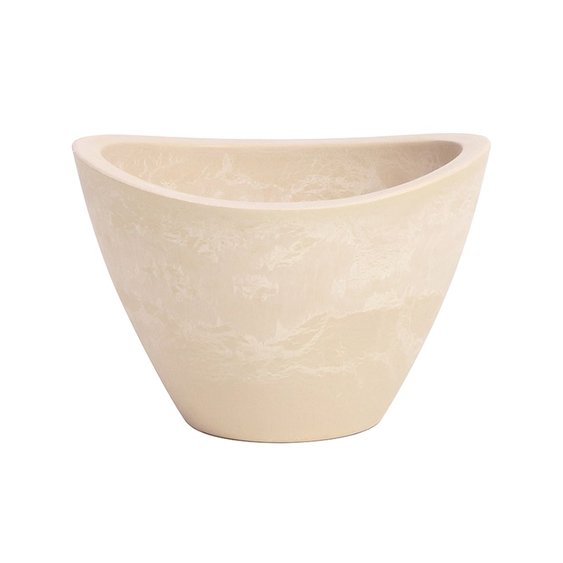 リサイクル原料の石材やプラスチックなどの素材の粉末を混合した地球にやさしいサステナブル素材で生産しております。陶器のような質感と、軽量かつ柔軟性のある樹脂の特性を併せ持っています。対候性に優れ、耐酸化性や耐食性があり、水漏れもありません。同じサイズのアイテムを積み重ねることが可能です。