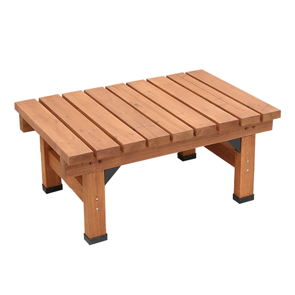 小型ながら安定感のあるスリムタイプの縁台です。天板は35mmと超厚。たわまない抜群の安定感です。別売の他の縁台やステップ、プランターなどと組み合わせれば、ウッドデッキ風の本格的な縁台を展開することもできます。汚れたら水拭きいただけます。※天然木のため、色褪せやひび割れが発生する場合があります。ホームセンターで販売されている木材の保護塗料で塗り直しいただくなど、定期的なメンテナンスをおすすめいたします。※ステイン塗料につきましては、衣料品等に色移りする場合がございます。乾拭きなどしてご利用ください。●重量:約12kg●仕上げ:ステイン塗装●組み立て式