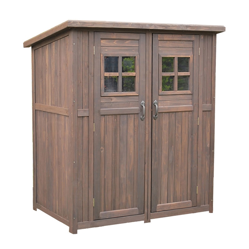 ホッとした気持ちになれる自然素材の収納庫です。アウトドア用品や灯油タンク、防災グッズ、園芸用品などどんどん入ってすっきりしたお庭に。扉と棚板の間に約20cmの隙間があり、長尺物も収納しやすい構造です。また、中の棚板が左右二分割になっており、片方または両方が取り外し可能なので、庫内を自由にアレンジできます。棚板4枚付属。※屋根は完全防水ではありません。●棚板サイズ:幅約680mm×奥行650mm●仕上げ:ステイン塗装●組み立て式