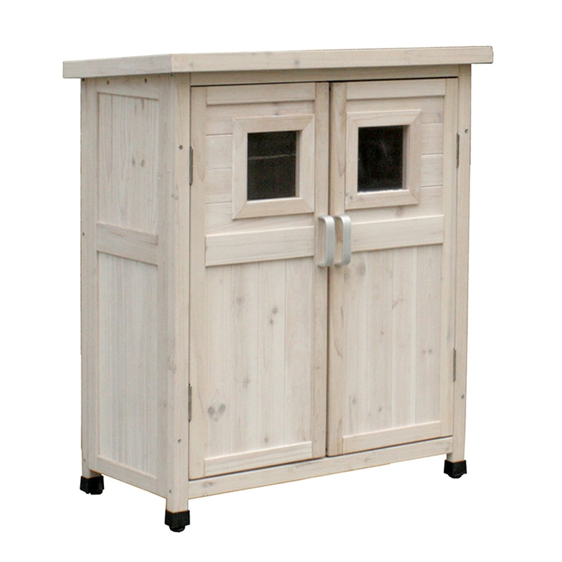 ベランダやバルコニーなど、せまい場所にも違和感なく馴染む、ナチュラルな天然木製の薄型収納庫です。ガーデニング用品や、お掃除グッズなどの収納におすすめです。棚板は前後二枚分割方式なので、前を外せば高さのあるものも収納できます。棚板2枚組×1セット付属。扉は上下マグネット式。脚部アジャスター付き。※屋根は完全防水ではありません。●収納有効内寸:幅約660×奥行290×高さ730mm●棚板サイズ:幅約682×奥行128mm●重量:約15kg●仕上げ:ステイン塗装●組み立て式