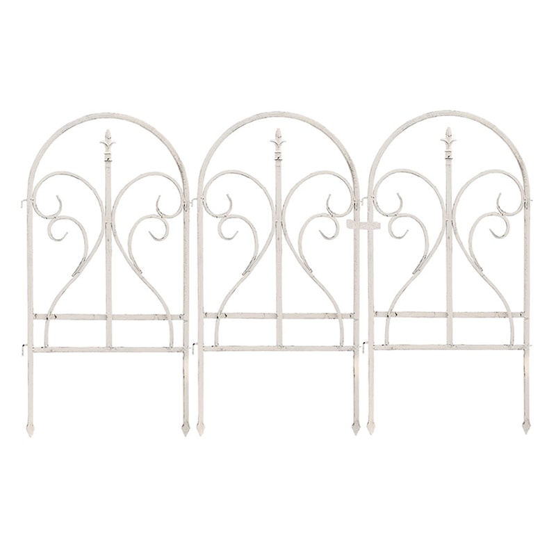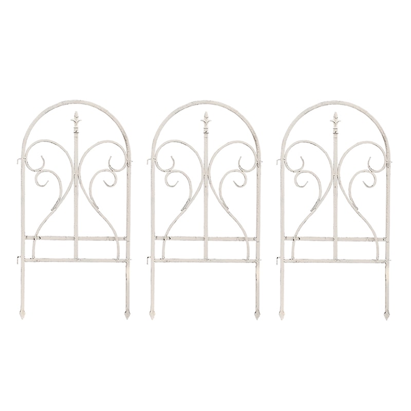 丸みのあるデザインが、高貴な愛らしさを感じさせる連結式のフェンスです。3枚組。フェンスとしてだけでなく、複数枚つなげれば正方形・長方形の花壇を作ることができます。ラフな庭園も美しいですが、整然とした清潔感のある庭園はお手入れがしやすく、植物それぞれの個性をしっかり感じ取れる良さがあります。プランターフェンスとして植木鉢の背に立てて、おしゃれなアクセントを加えたり、バラや朝顔のつるを這わせても素敵。連結はネジなどは使わず、上から差し込むだけのカンタン仕様。使わない時は連結を外せば、コンパクトに収納できます。※基本的に埋め込み部分をしっかり埋め込んで頂ければ自立しますが、柔らかすぎる地面などでは倒れる恐れがありますので、お客様自身で固定いただくかご使用をお避けください。●重量:約1.8kg/枚●完成品