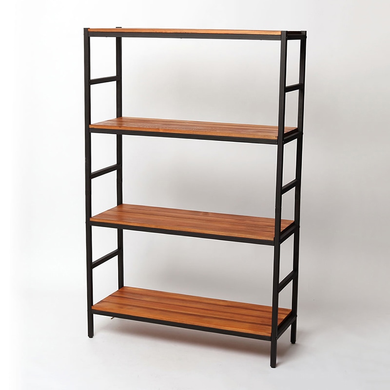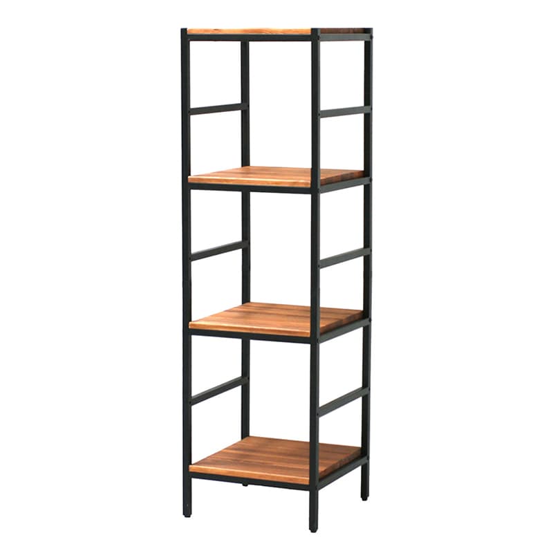 温もりのある天然木の4段シェルフです。板厚20mmのどっしりとしたパイン材を使用。突板や合板にはない、本物の良さがあり、長く使うほどに愛着と味わいが増すのが特徴です。天板は四方をアイアンで縁取った、ミッドセンチュリー風のモダンなデザイン。まるでおしゃれな路面ショップのように、お気に入りの生活雑貨をディスプレイできます。下段はスチール製のため、強度は抜群。それでいて印象は軽やか。せまいお部屋でも圧迫感なくお使いいただけます。木のぬくもりが感じられる、なめらかなオイル塗装です。木目がはっきりと浮かび上がり、本来の美しさを引き出します。※天然木のため、節や、乾燥による割れが発生する場合があります。強度に問題はありません。●天板調整ピッチ5ヶ所(約50mm間隔)●重量:約17.6kg●仕上げ:オイル塗装(木部)、粉体塗装(スチール部)●組み立て式