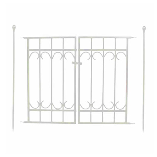 丸みのあるデザインが、高貴な愛らしさを感じさせる連結式のフェンス2枚にゲートが1枚付いたセットです。ゲートとしてだけでなく、同じフィニアルシリーズで複数枚つなげれば正方形・長方形の花壇を作ることもできます。一から門を作るとなると、時間も費用もかかりますが、これなら地面に差し込むだけで簡単に、門扉つきのおしゃれなゲートが完成します。つるの絡みやすいデザインなので、バラや朝顔のトレリスにも使用できます。連結はネジなどは使わず、上から差し込むだけのカンタン仕様。使わない時は連結を外せば、コンパクトに収納できます。※基本的に埋め込み部分をしっかり埋め込んで頂ければ自立しますが、柔らかすぎる地面などでは倒れる恐れがありますので、お客様自身で固定いただくかご使用をお避けください。●フェンスサイズ:幅約485×高さ910×厚さ約15mm/枚●重量:約5.2kg●完成品
