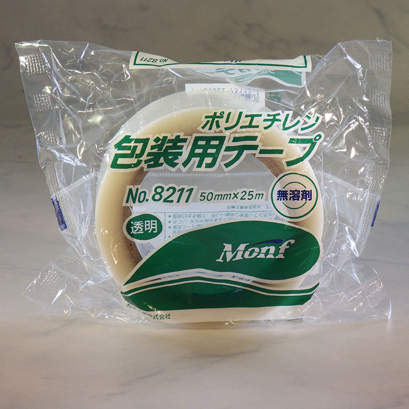 古藤工業 Monf ポリエチレン包装用テープ No.8211 50mm×25m 透明 1巻(ご注文単位30巻)【直送品】