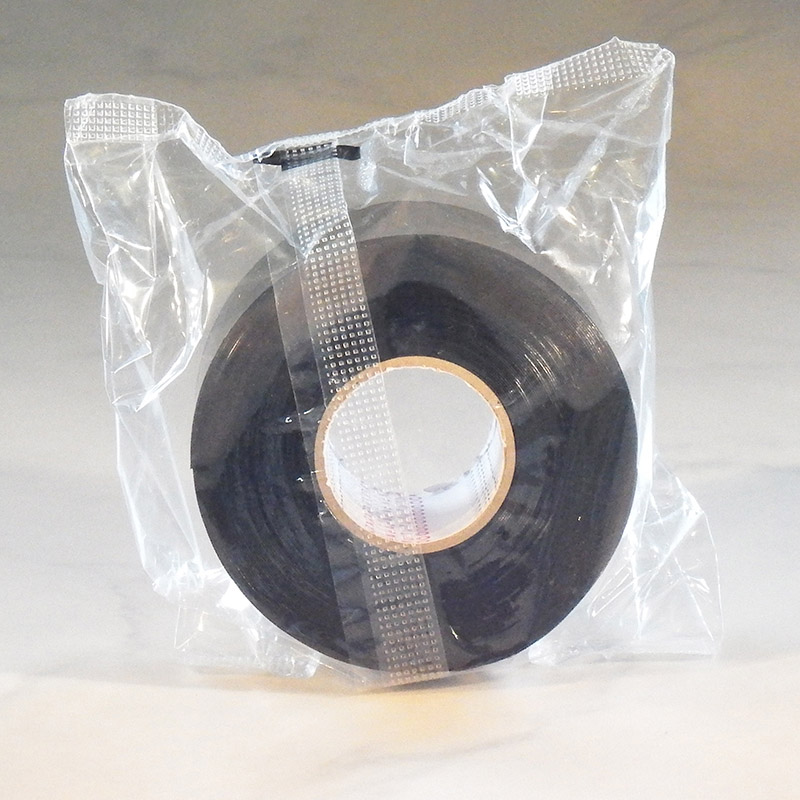 ポリエチレンを基材としブチルゴムを主成分とした粘着層をもった電気絶縁用の自己融着性テープです。高い絶縁性・耐オゾン性・優れた水密性を備えています。高圧ケーブルの端末絶縁処理に。絶縁カバーの防水に。●入数:10巻