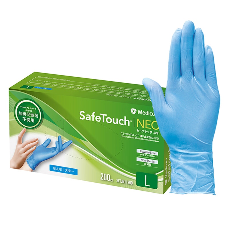 メディコムジャパン ニトリルグローブ セーフタッチ ネオ L ブルー SFTJN1139D 200枚/箱(ご注文単位10箱)【直送品】