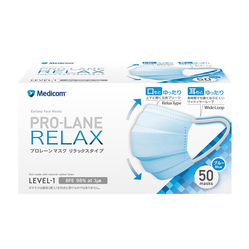 メディコムジャパン プロレーンマスク リラックス レギュラー ブルー PLEJMA2715 50枚/箱(ご注文単位40箱)【直送品】
