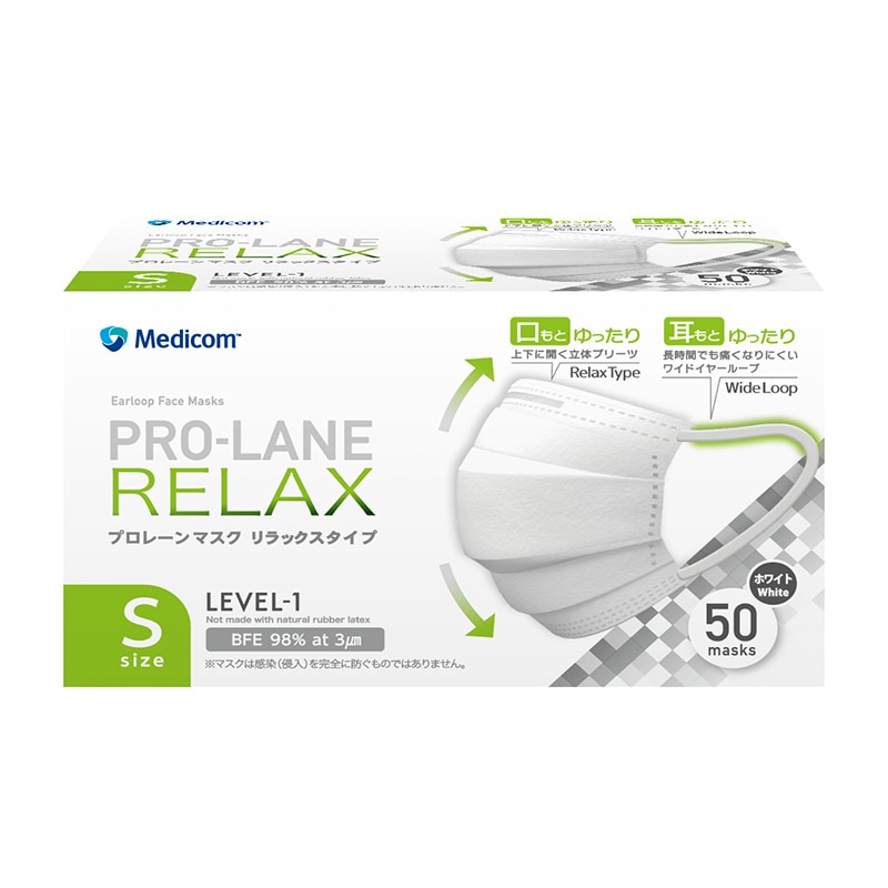 メディコムジャパン プロレーンマスク リラックス S ホワイト PLEJM2714S 50枚/箱(ご注文単位40箱)【直送品】