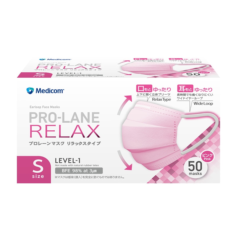 メディコムジャパン プロレーンマスク リラックス S ピンク PLEJM2716S 50枚/箱(ご注文単位40箱)【直送品】
