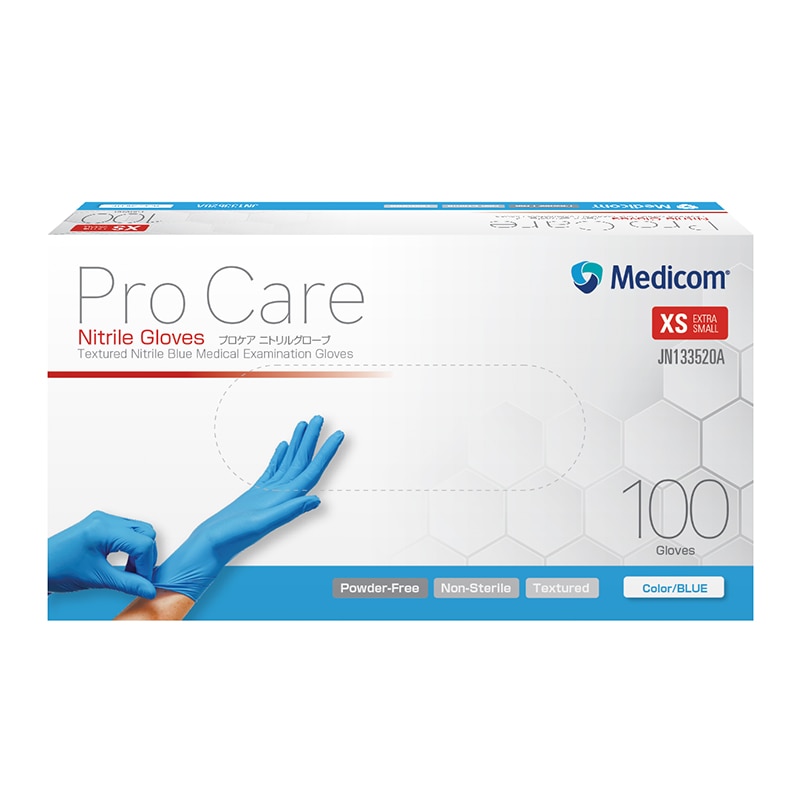 メディコムジャパン ニトリルグローブ プロケア XS ブルー JN133520A 100枚/箱(ご注文単位10箱)【直送品】