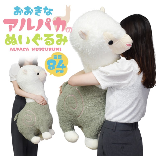 ふかふかBIGサイズのアルパカのぬいぐるみです。ワンポイントのピンクのうずまき模様が入ったふわふわなアルパカ。大人が抱っこしてもおおきいサイズ感で、ぎゅっと抱きしめたくなる可愛さです。なでたり、隣に座ったり、抱きついたりもできて、ずっと一緒にいるだけで癒されること間違いなし。サプライズのプレゼントや店舗のマスコットにもおすすめです。●重さ:約1.4kg