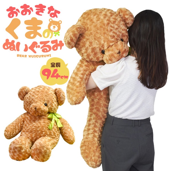 ふかふかBIGサイズのくまのぬいぐるみです。ブラウンのふかふかした毛並みで、グリーンカラーのリボンがワンポイントのくまさん。大人が抱っこしてもおおきいサイズ感で、ぎゅっと抱きしめたくなる可愛さです。なでたり、隣に座ったり、抱きついたりもできて、ずっと一緒にいるだけで癒されること間違いなし。サプライズのプレゼントや店舗のマスコットにもおすすめです。●重さ:約1.4kg