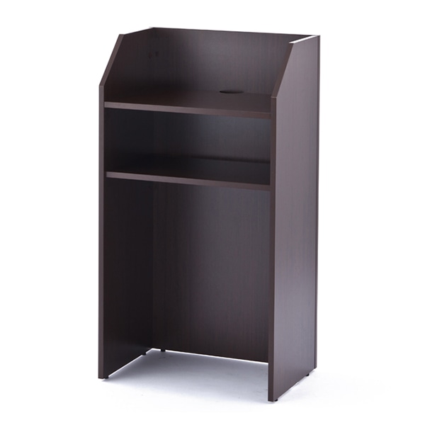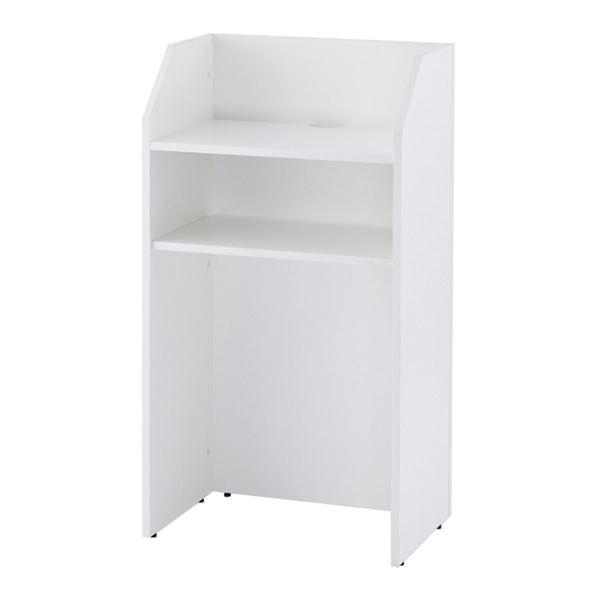 講演や演説、司会やプレゼンテーション時に活躍の演説台。天板にはPCやマイク等の設置用に配線穴が開いています。天板下には棚板があり、資料等が収納できます。有効寸法:天板W562×D380×H199/棚板W562×D332×H206/棚板下から床までH658mm 耐荷重:天板約20、棚板約10Kg●お客様組立て商品です(2人以上で約15分)●重量:23kg
