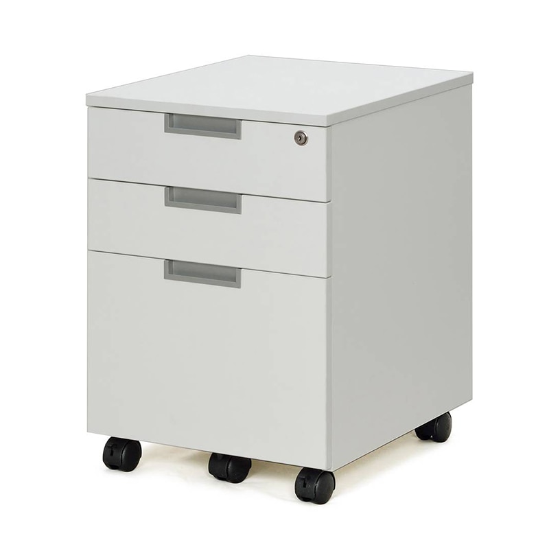 Assort Series(組み合わせるの意味)RFSLDスチール脚デスクのサイズに合わせた、奥行490mmの三段スリムワゴンです。有効内寸法:上段・中段:W225xD411xH93mm 下段:W225xD411xH247mm※ペントレーは付いていません●お客様組立て商品です(2人以上で約15分)●重量:20kg●キャスター:ナイロン●オールロック機構