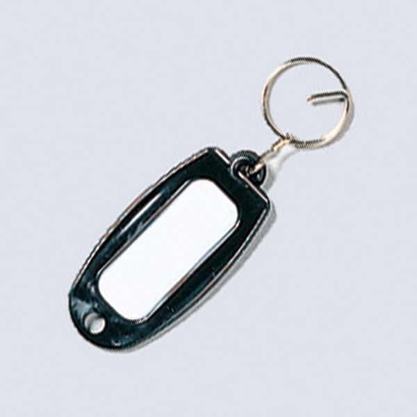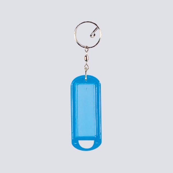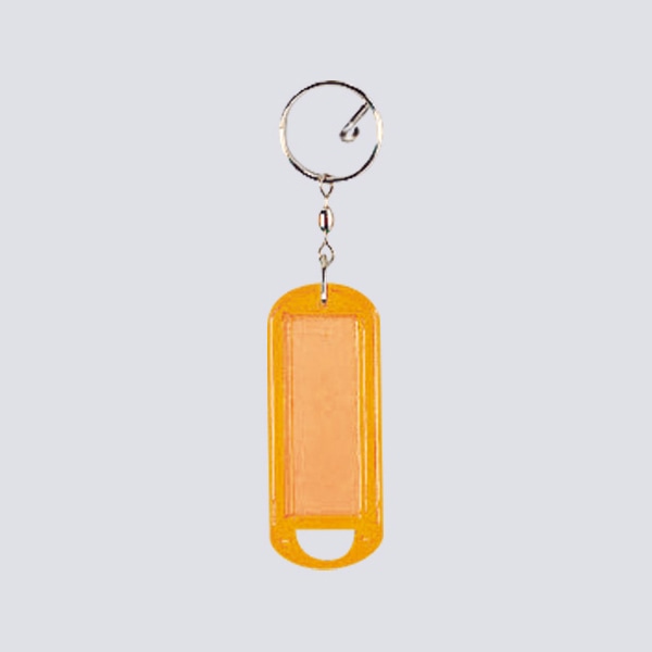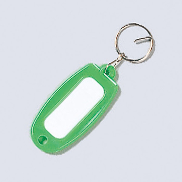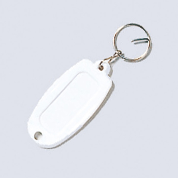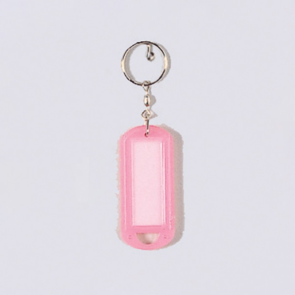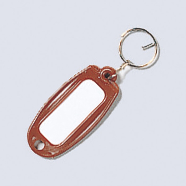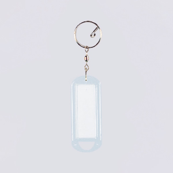 鍵や持ち物の名前表示に便利なリング付き名札です。