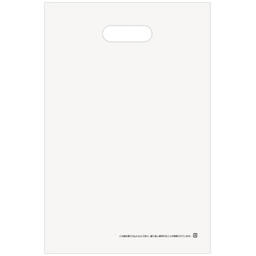 ●マチなし手提袋。●サイズ/S●収容サイズの目安/A5●タイプ/カサカサ●色/ホワイト●寸法/幅200×高さ300mm●厚さ/0.05mm●材質/高密度ポリエチレン(HDPE)●1パック=50枚●しっかりした物に好適な高密度ポリエチレン(カサカサタイプ)の手提げ袋。Sサイズ、色はホワイトです。●再利用おすすめ表示記入。0.05mm厚なので無料配布OKとなります。