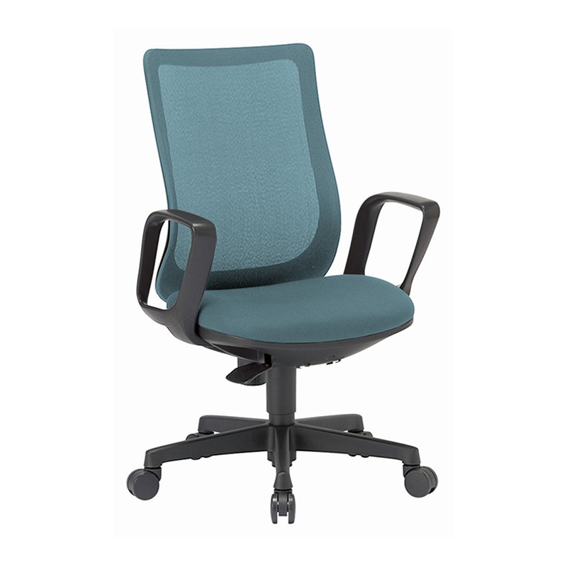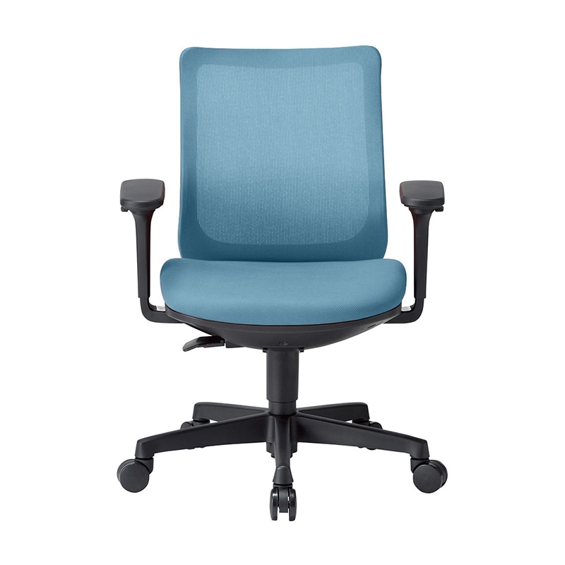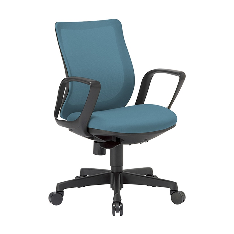 AICO オフィスチェア ミドルバック サークル肘タイプ ブラックシェル/セルリアンブルー OA-3235B-FBJ 1台(ご注文単位1台)【直送品】