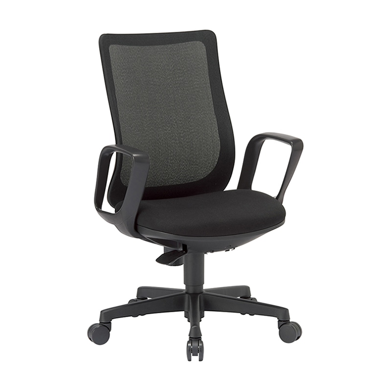 AICO オフィスチェア ミドルバック サークル肘タイプ ブラックシェル/ブラック OA-3235B-FBJ 1台(ご注文単位1台)【直送品】