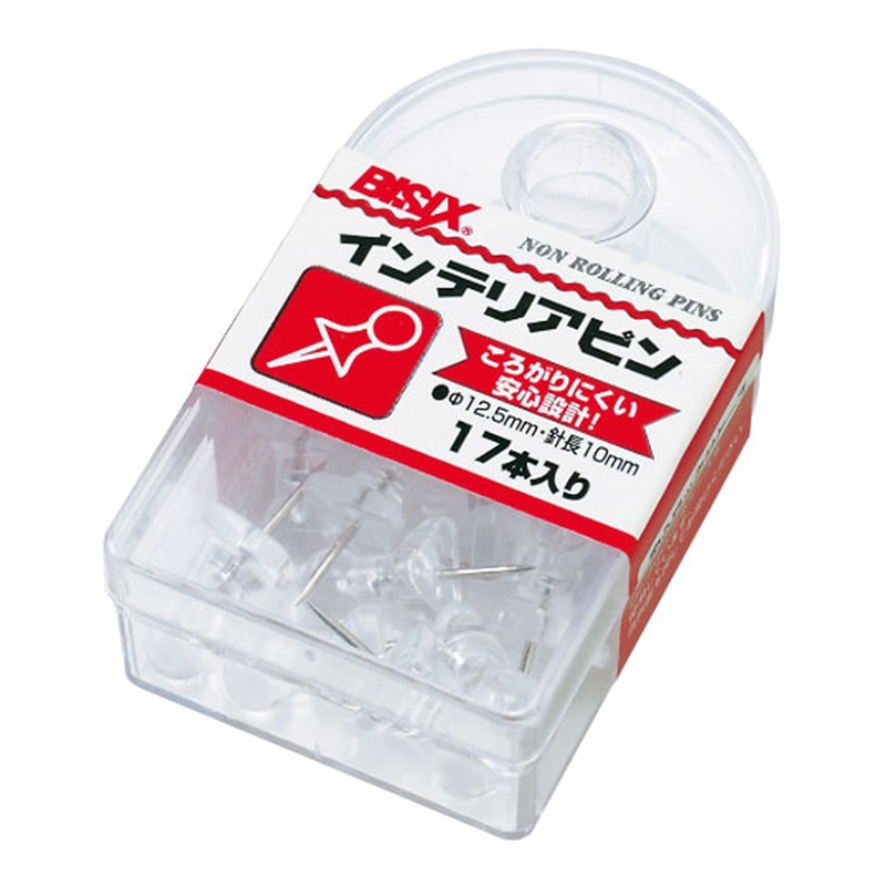 うっかり落としたとき、針が上を向かず、転がらない安心設計のプッシュピンです。収納に便利なPSケース17本入り。●色:クリア調の紫