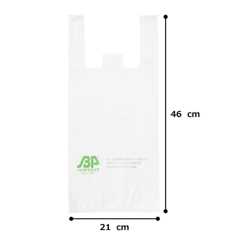 サトウキビ由来のバイオマス原料を25%配合し環境に配慮したレジ袋です。乳白色タイプ。有料化の対象外で、お客様への無償配布可能商品です。東日本45号、西日本45号相当。2Lペットボトル3本や大型雑貨、衣類まで余裕で入ります。●入数:100枚