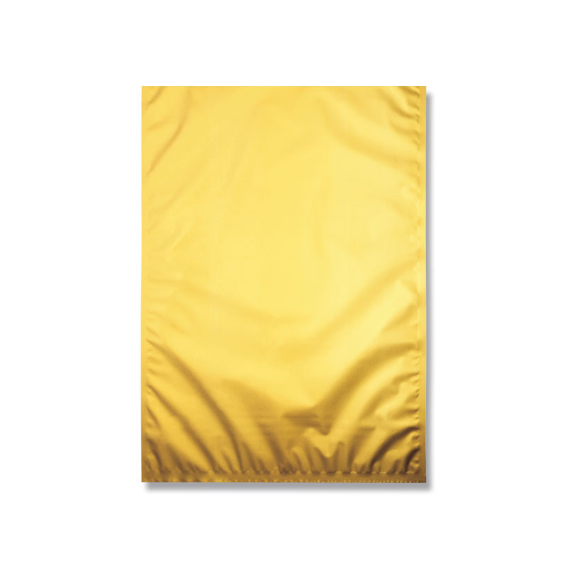 アルミ蒸着ペットフィルム製のギフトバッグです。口の部分をリボンで結ぶだけでも華やかに仕上がります。裏表貼り合わせ3方シール