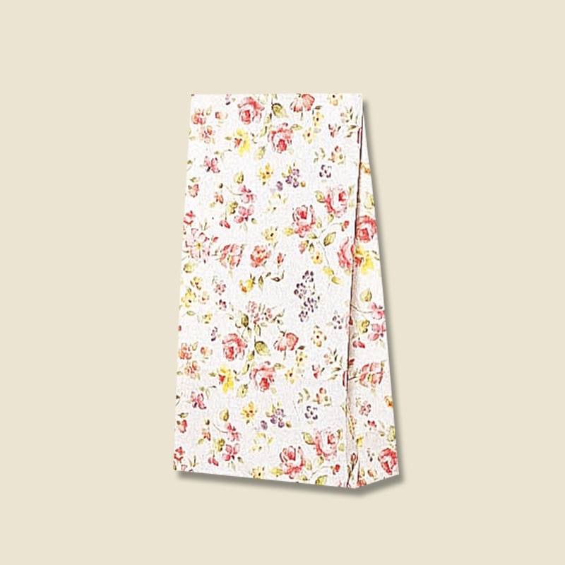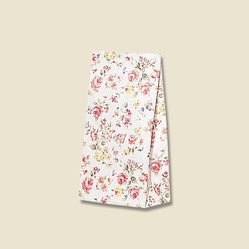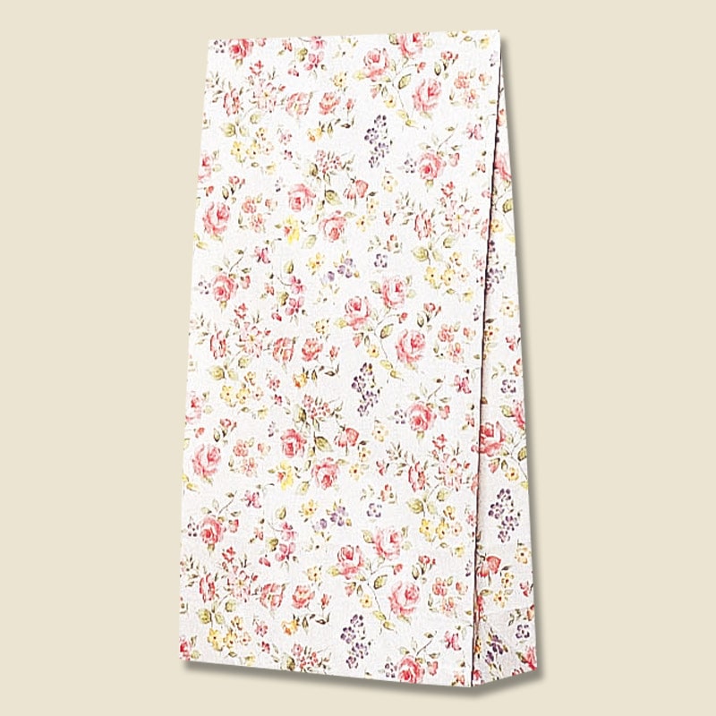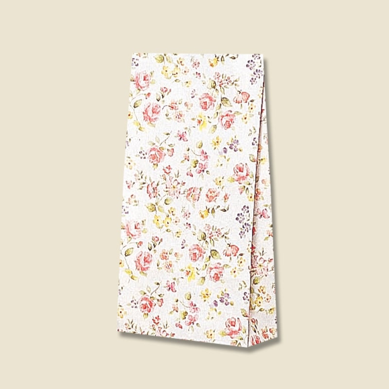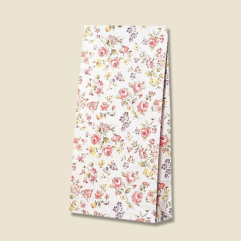 落ち着いた雰囲気で綺麗な花柄でマチの小さい角底袋です。●入数:100枚