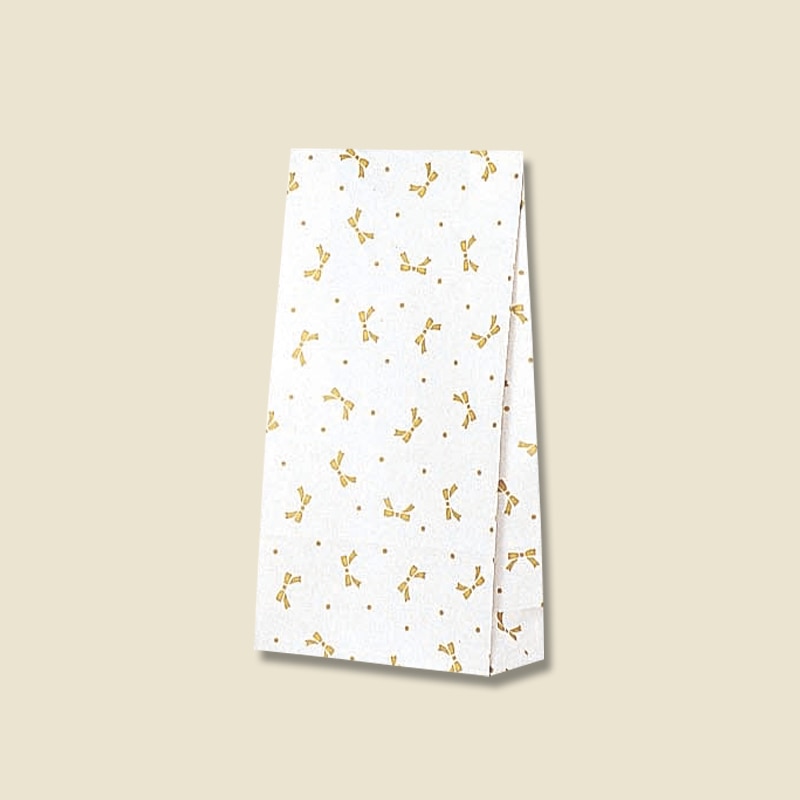 可愛いリボンを散りばめたマチの小さい角底袋です。●入数:100枚