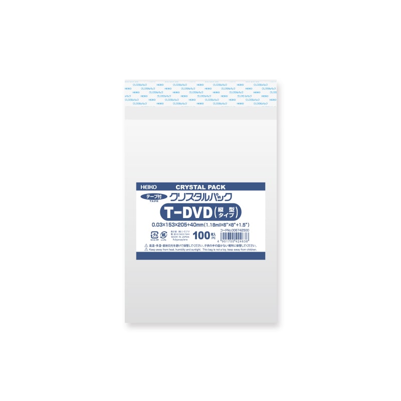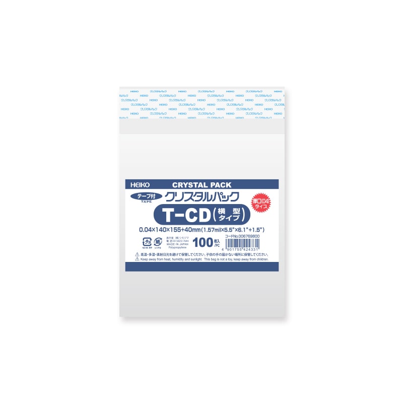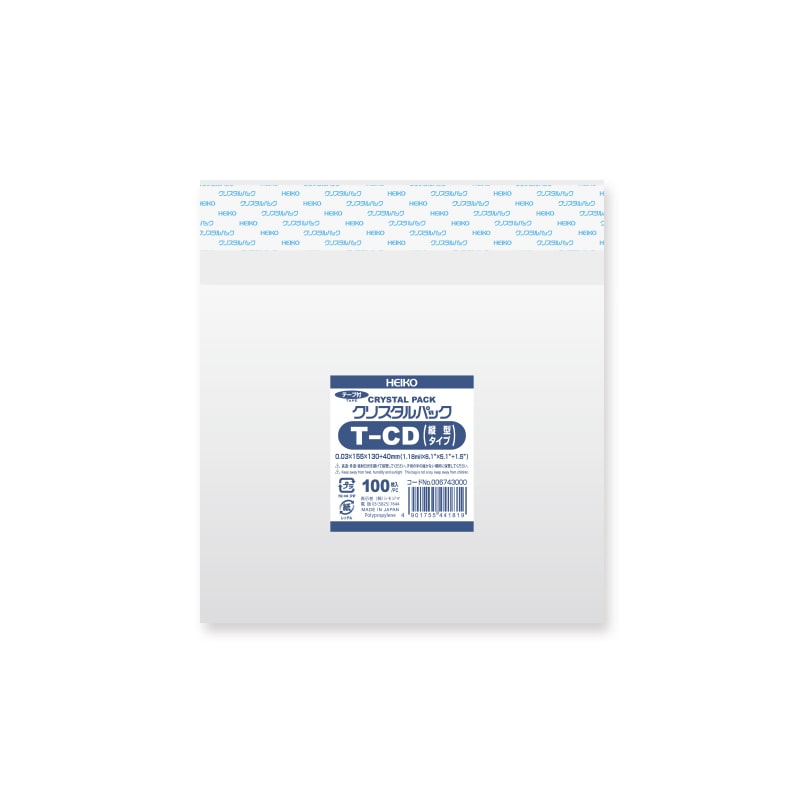 HEIKO OPP袋 クリスタルパック T-MD(音楽ソフト用) (テープ付きボディタイプ)100枚/袋