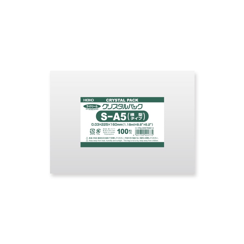 HEIKO OPP袋 クリスタルパック S-B5横 (テープなし) 100枚/袋