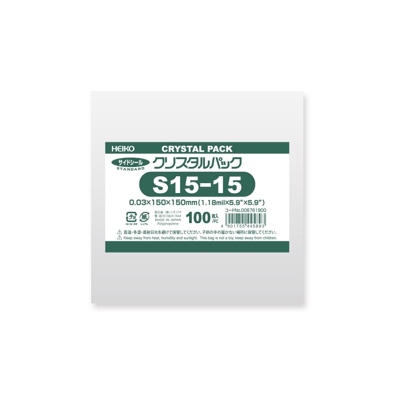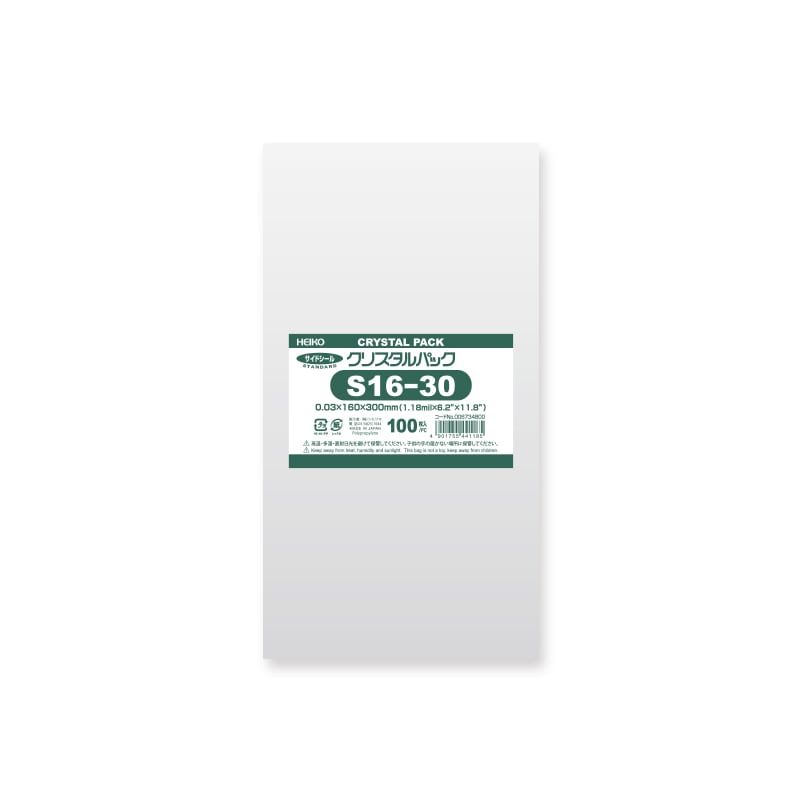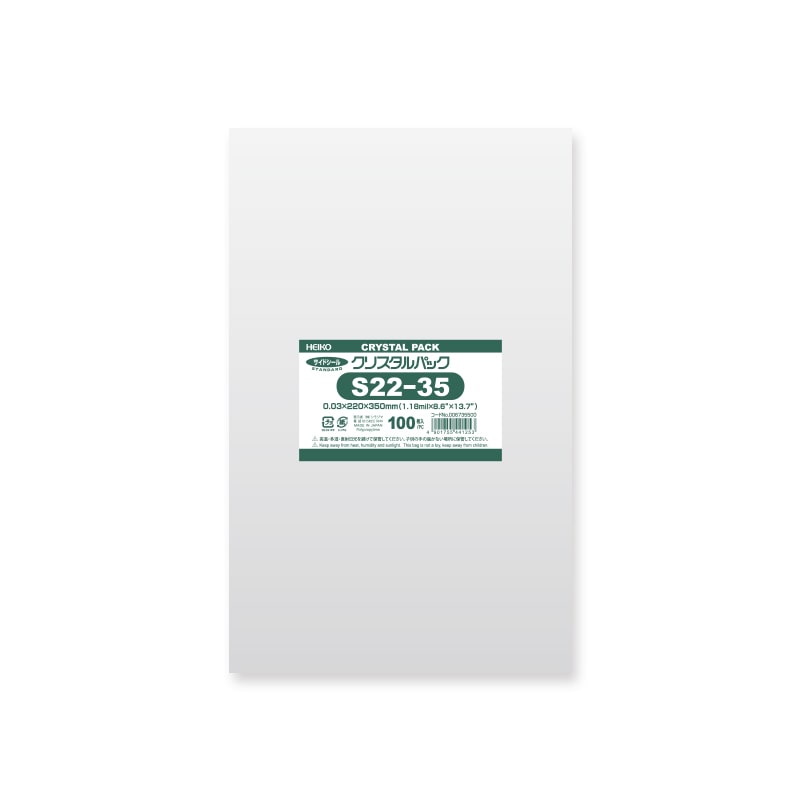 つやがあり、透明感抜群の国産高級OPPフィルムを使用したクリスタルパックシリーズ。すべりが良く作業効率もバツグン。袋の両側を熱圧着して製造する為、のりしろが発生しないので中身が綺麗に見えます。S(サイドシール)はテープが付いていない、最もスタンダードなシリーズです。食品衛生法規格基準適合商品です。●入数:100枚