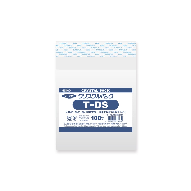 HEIKO OPP袋 クリスタルパック TG-CD(2枚組) (テープ付き) 厚口04 100枚/袋