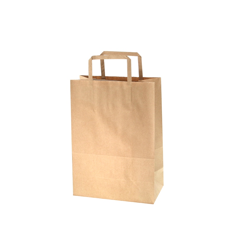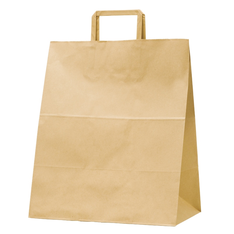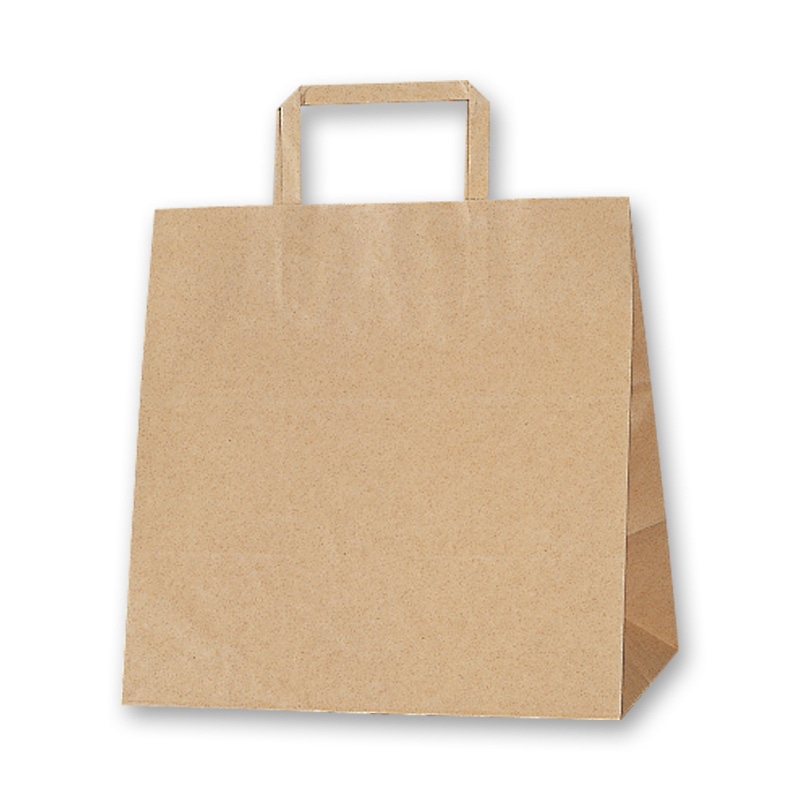 プレーンなクラフト紙の手提げ袋です。無地ものですので、さまざまな用途にご利用いただけます。食パン2斤を入れるのにおすすめサイズです。未使用時には紐が飛び出ていないため、在庫スペースにやさしい平紐タイプです。●手紐:平紐未晒●入数:50枚