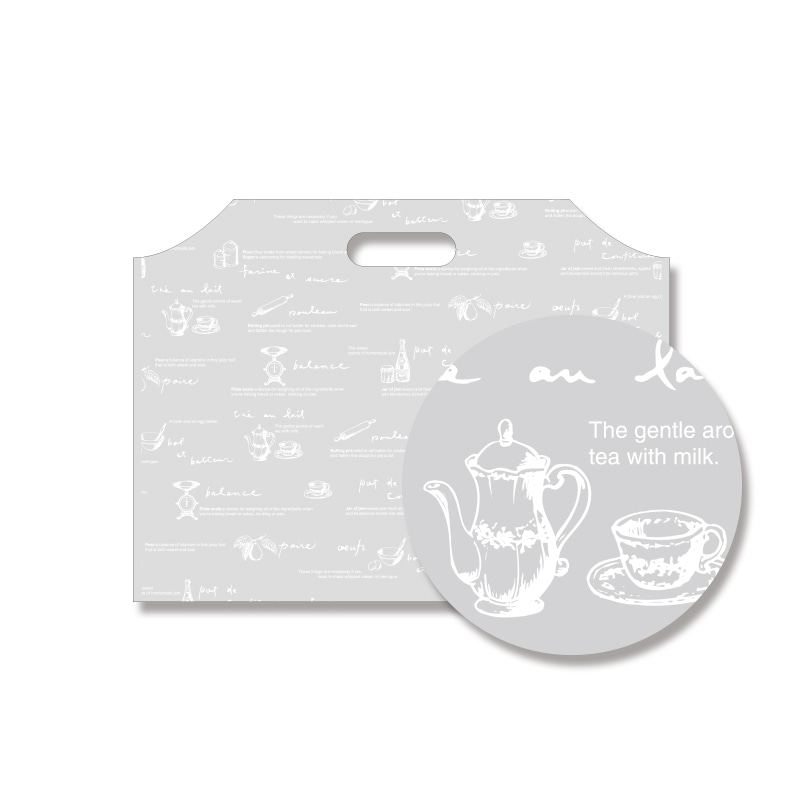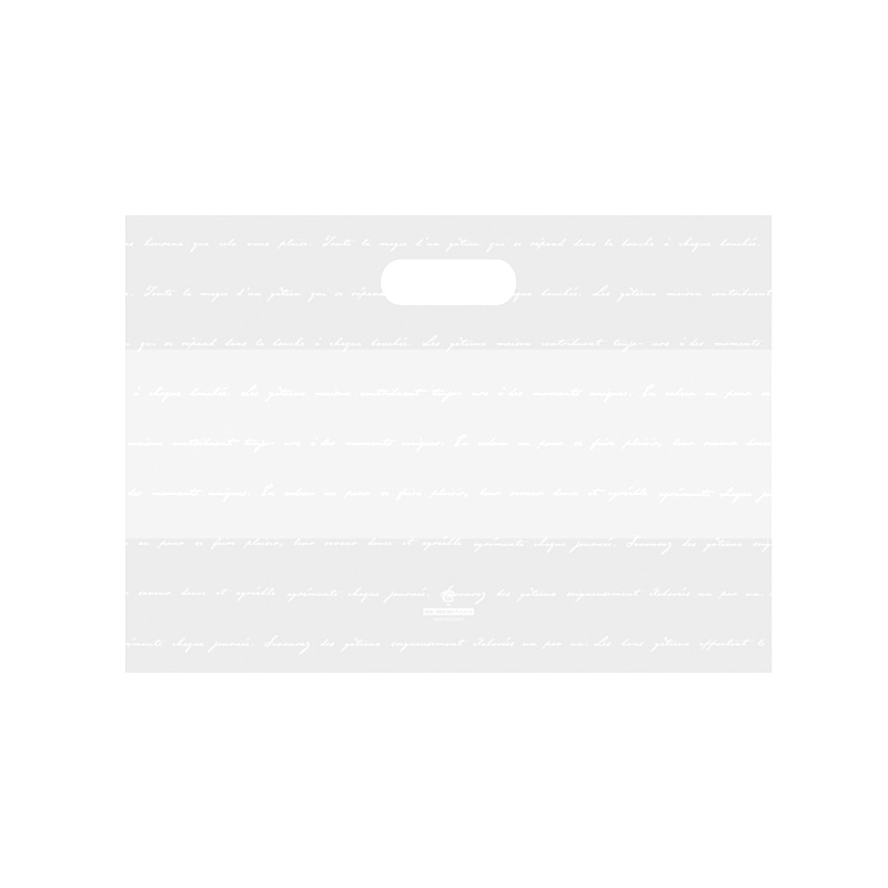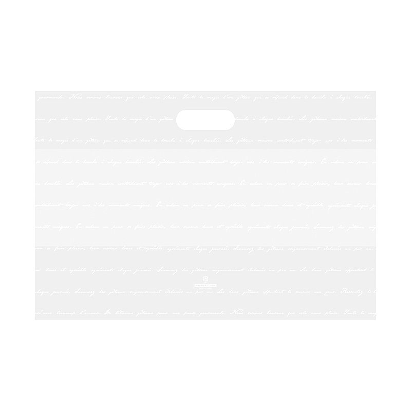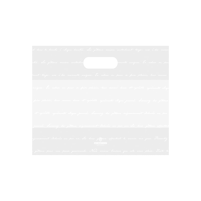 ●食品におすすめなシンプルでオシャレなデザイン。底マチが広いため、食パンや大きめの箱などを入れるのに適しています。●入数:100枚●両面印刷 ※穴から下の高さは多少前後する場合があります。