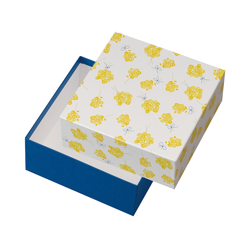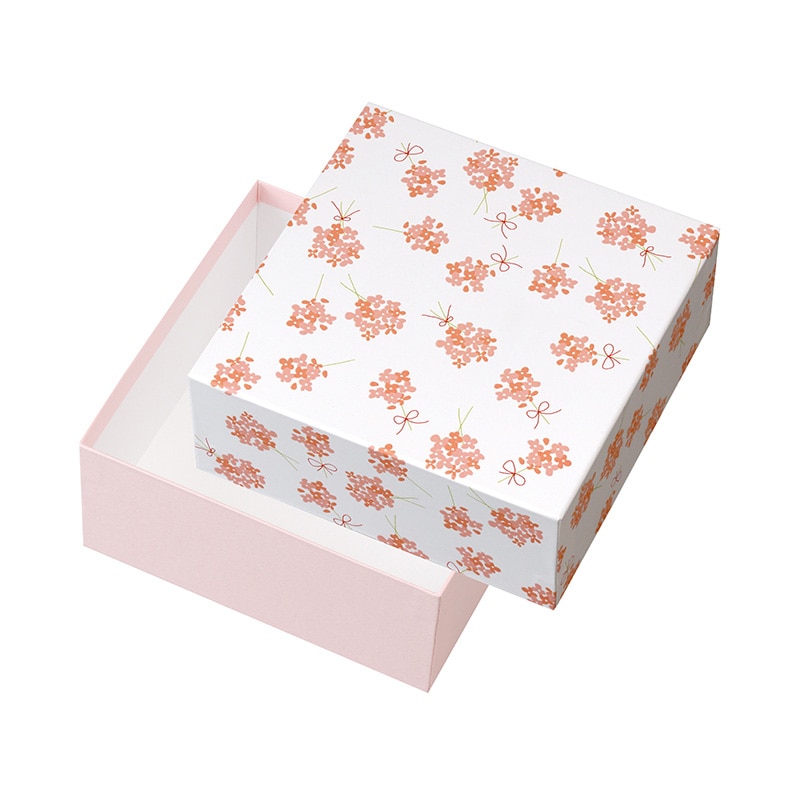 母の日のリースが描かれた小ぶりな貼箱です。蓋全面にイラストが入っているので、どの角度から見ても楽しい箱です。貰った後もリユースしたくなるデザインです。●入数:30個