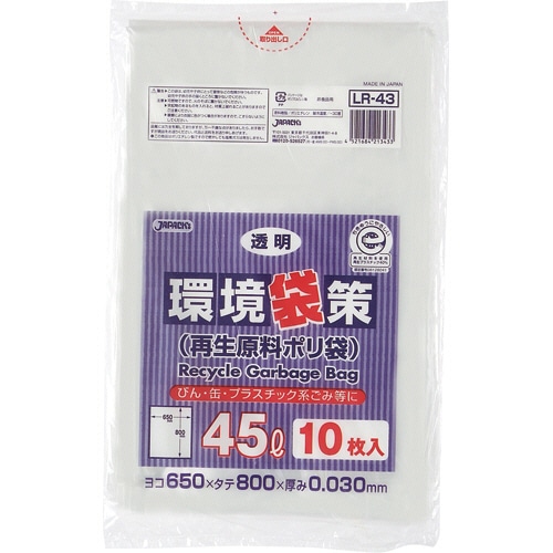 ジャパックス 環境袋策 再生原料ポリ袋 透明 20L LR-23 10枚/袋(ご注文単位1袋)【直送品】