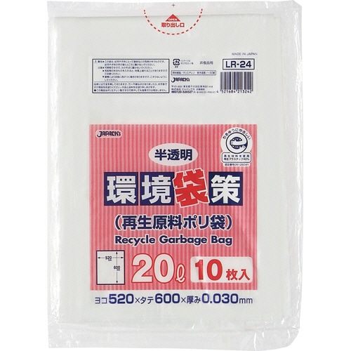 ジャパックス 環境袋策 再生原料ポリ袋 半透明 20L LR-24 10枚/袋(ご注文単位1袋)【直送品】