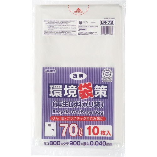 ジャパックス 環境袋策 70L 再生LL 半透明 0.04mm 1ケース(10枚×30冊入) LR-74 1ケース(ご注文単位1ケース)【直送品】