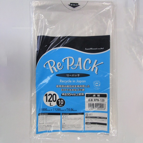 岩井化成 再生ごみ袋 リーパック 透明 45L 10枚入 RPN-120 10枚/袋(ご注文単位20袋)【直送品】