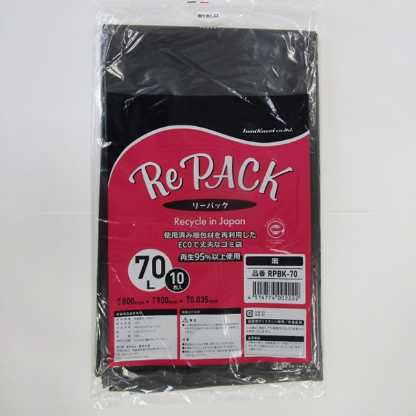 岩井化成 再生ごみ袋 リーパック 黒 70L 10枚入 RPBK-70 10枚/袋(ご注文単位30袋)【直送品】