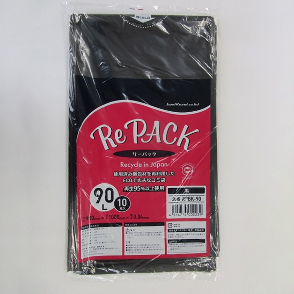 岩井化成 再生ごみ袋 リーパック 黒 90L 10枚入 RPBK-90 10枚/袋(ご注文単位20袋)【直送品】