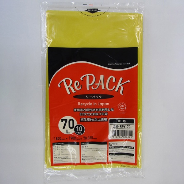 岩井化成 再生ごみ袋 リーパック 黄色 70L 10枚入 RPY-70 10枚/袋(ご注文単位30袋)【直送品】