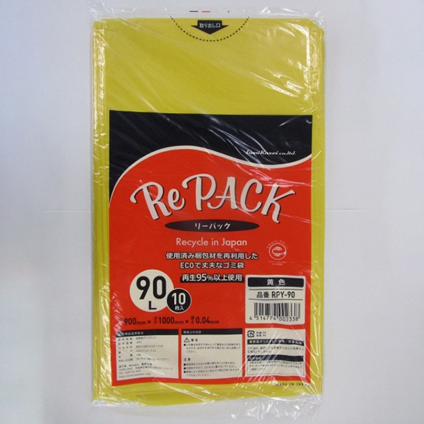 岩井化成 再生ごみ袋 リーパック 黄色 90L 10枚入 RPY-90 10枚/袋(ご注文単位20袋)【直送品】