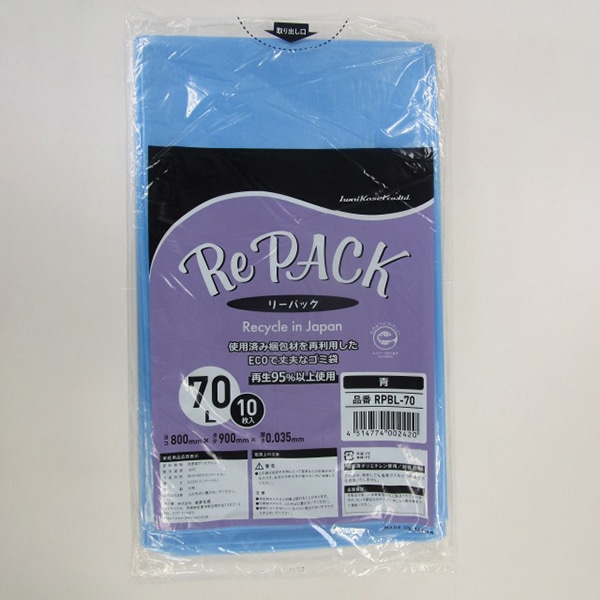 岩井化成 再生ごみ袋 リーパック 青 70L 10枚入 RPBL-70 10枚/袋(ご注文単位30袋)【直送品】