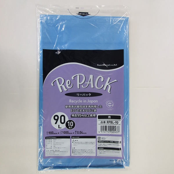 岩井化成 再生ごみ袋 リーパック 青 90L 10枚入 RPBL-90 10枚/袋(ご注文単位20袋)【直送品】