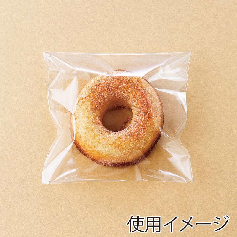 防曇加工したOPP袋です。口部分がフラップ付タイプで開けやすく、作業効率がアップします。お菓子・パンの個包装向けの商品で、ミニドーナツなどに最適なサイズです。フラップ部分に口留めのシールは付いておりません。食品衛生法規格基準適合商品です。●入数:100枚