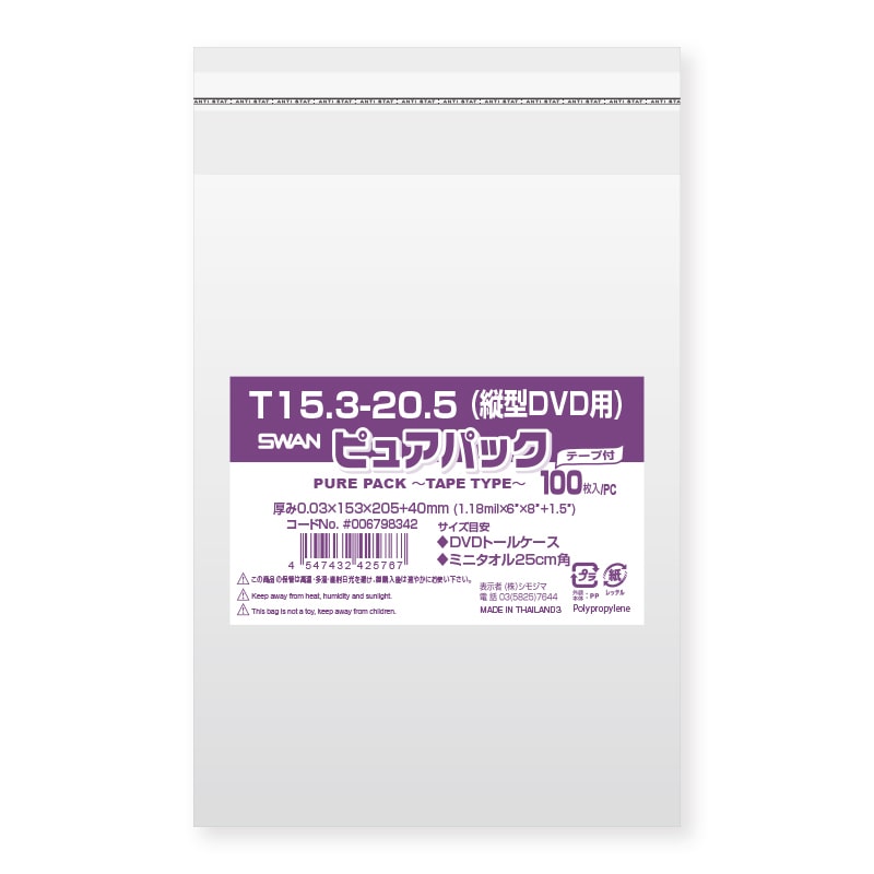 HEIKO OPP袋 クリスタルパック T-DVD(縦型) (テープ付きボディタイプ) 100枚/袋