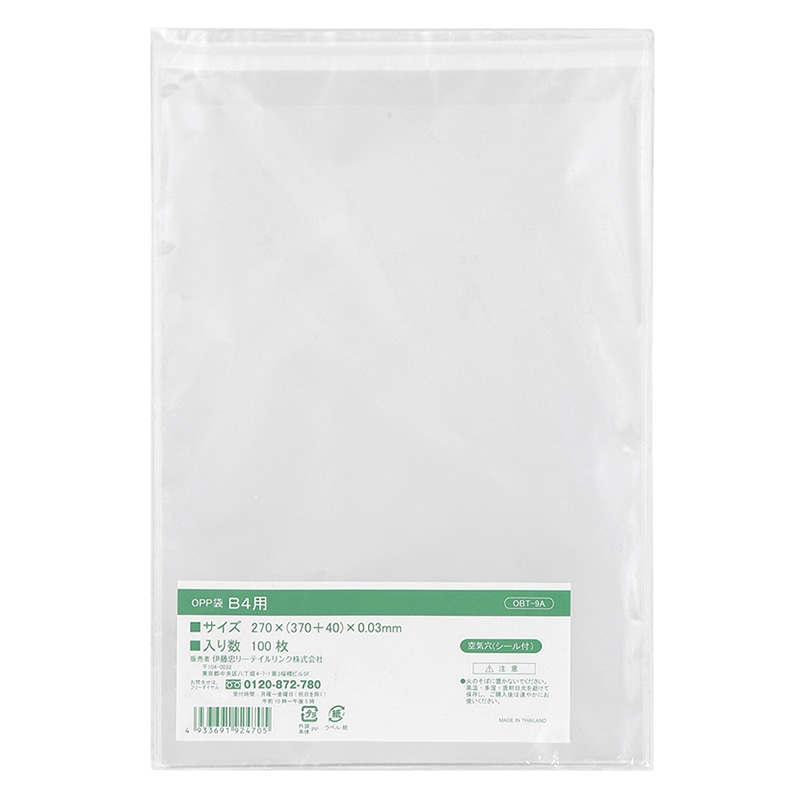 伊藤忠リーテイルリンク OPP袋 空気穴入り シール付 B4用 100枚入 OBT-9A 1パック(ご注文単位20パック)【直送品】