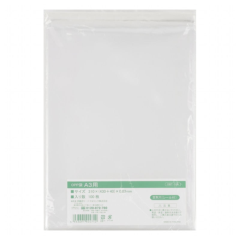 伊藤忠リーテイルリンク OPP袋 空気穴入り シール付 A3用 100枚入 OBT-10A 1パック(ご注文単位20パック)【直送品】
