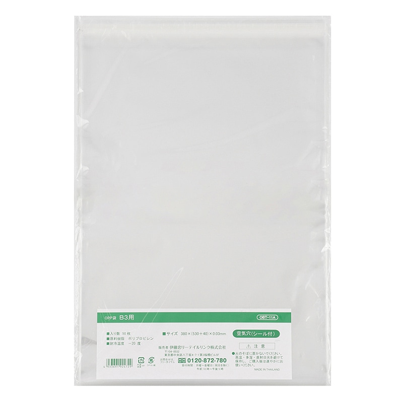 伊藤忠リーテイルリンク OPP袋 空気穴入り シール付 B3用 50枚入 OBT-11A 1パック(ご注文単位20パック)【直送品】